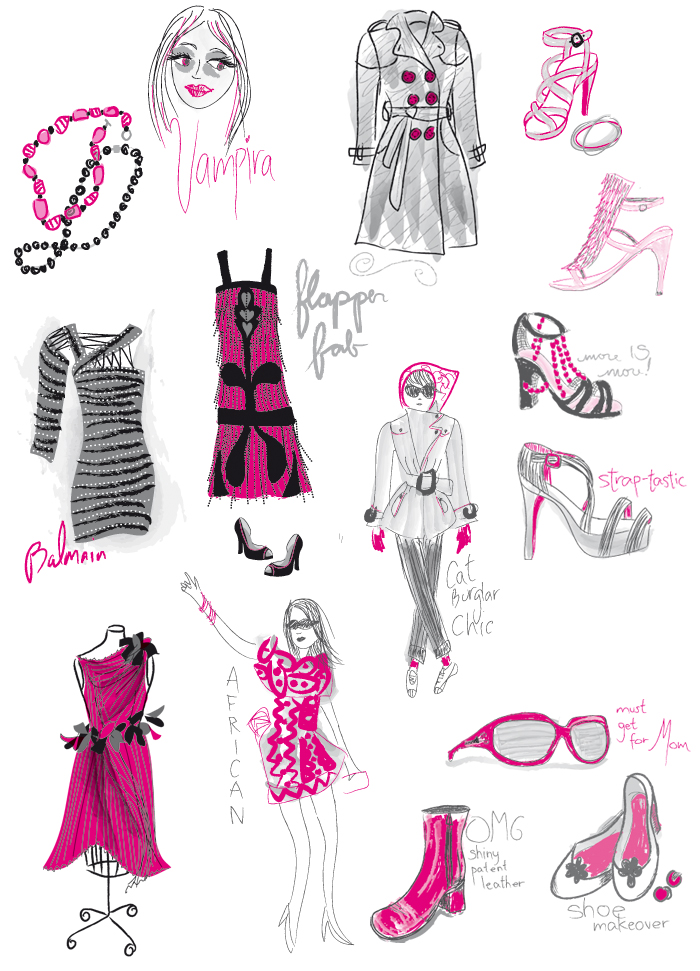 Illustrations for The Allegra Biscotti Collection 2: Who What Wear (cover and interior, below)